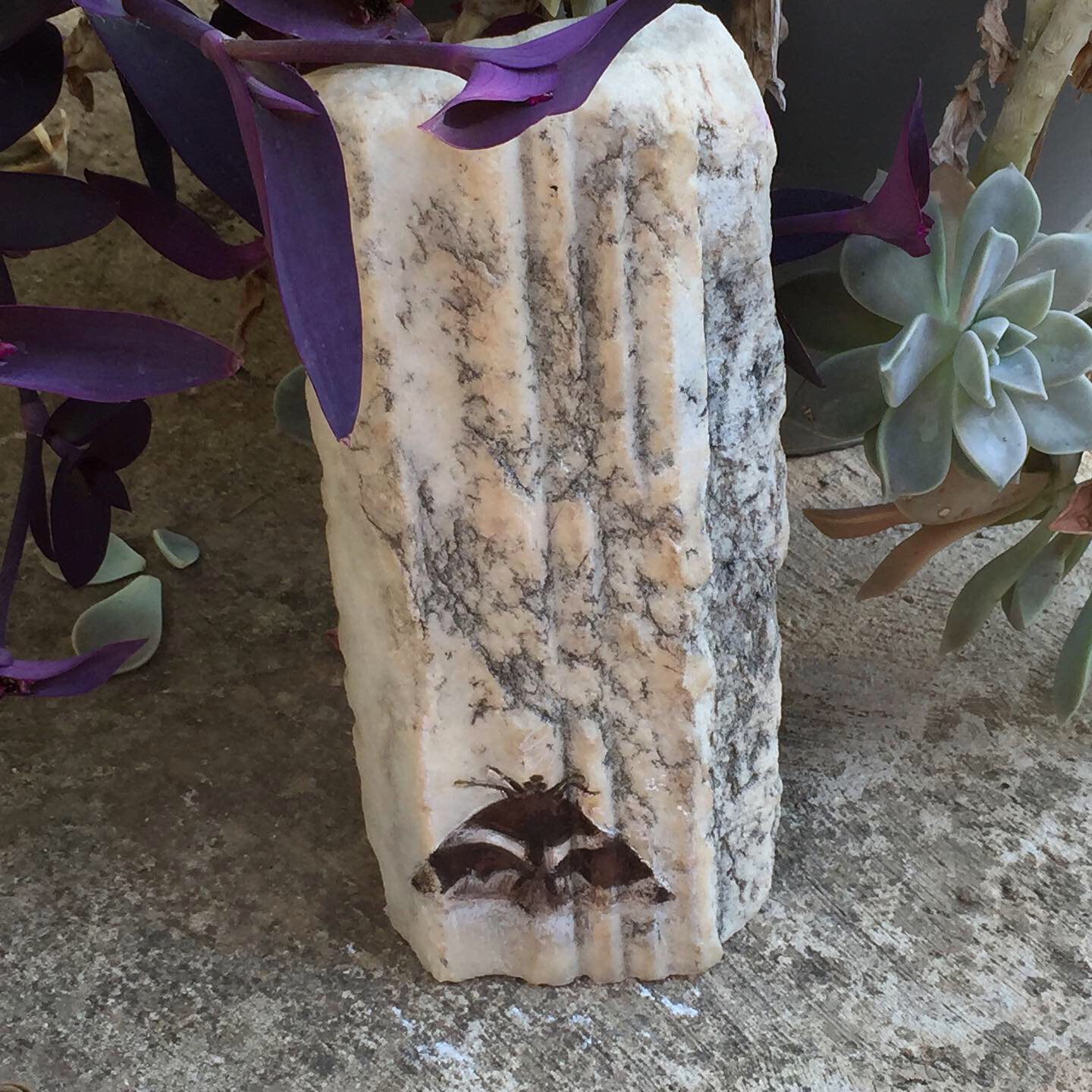 ROCK DRAWING 'Triangle Moth ' 2021 mixed media, Marble, 30 x 14 cm