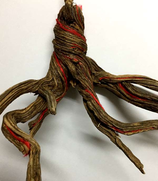 'Red River' found natural object,yarn 15 x 35 cm 2020