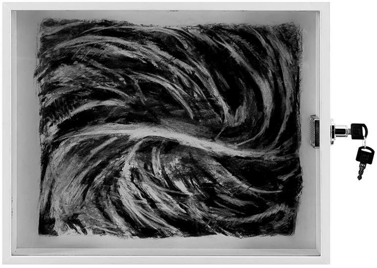 Seed Unit #4 ''Centre" Charcoal on board,MDF,glass,lock & key 41.4 x 33.5 x 5 cm 2014